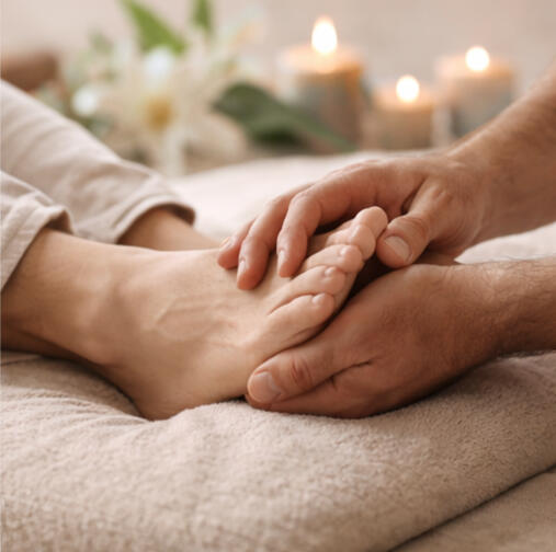 Ich arbeite mit gezieltem Druck an bestimmten Reflexzonen der Füße.