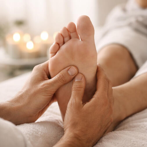 Ich arbeite mit gezieltem Druck an bestimmten Reflexzonen der Füße.